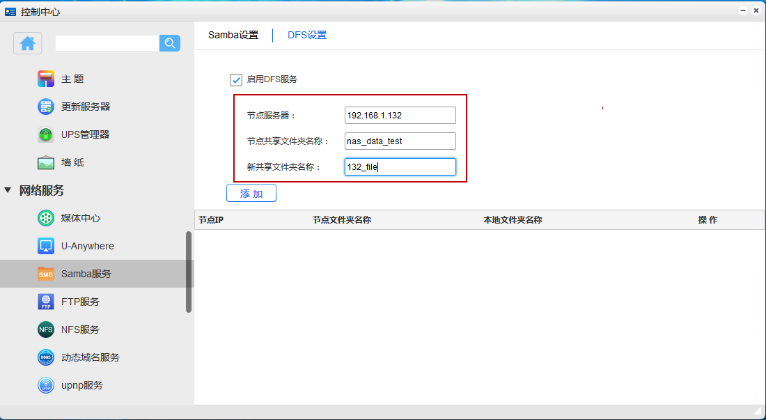网络服务内包含 U-Aanywhere ,内网穿透,媒体中心, SMB 管理、FTP 设置、NFS 设置、动态域名、WebDAV 设置、VUPNP 设置