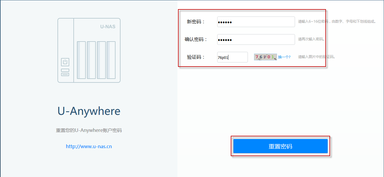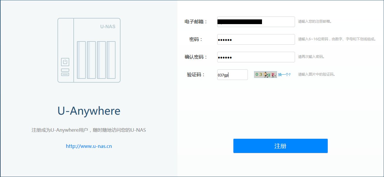 在此用户可注册 U-Anywhere 的账号,登入设置域名后可直接在外网用域名访问 NAS 上的数据。可切换其他账号登入,并且支持找回密码,激活等操作。