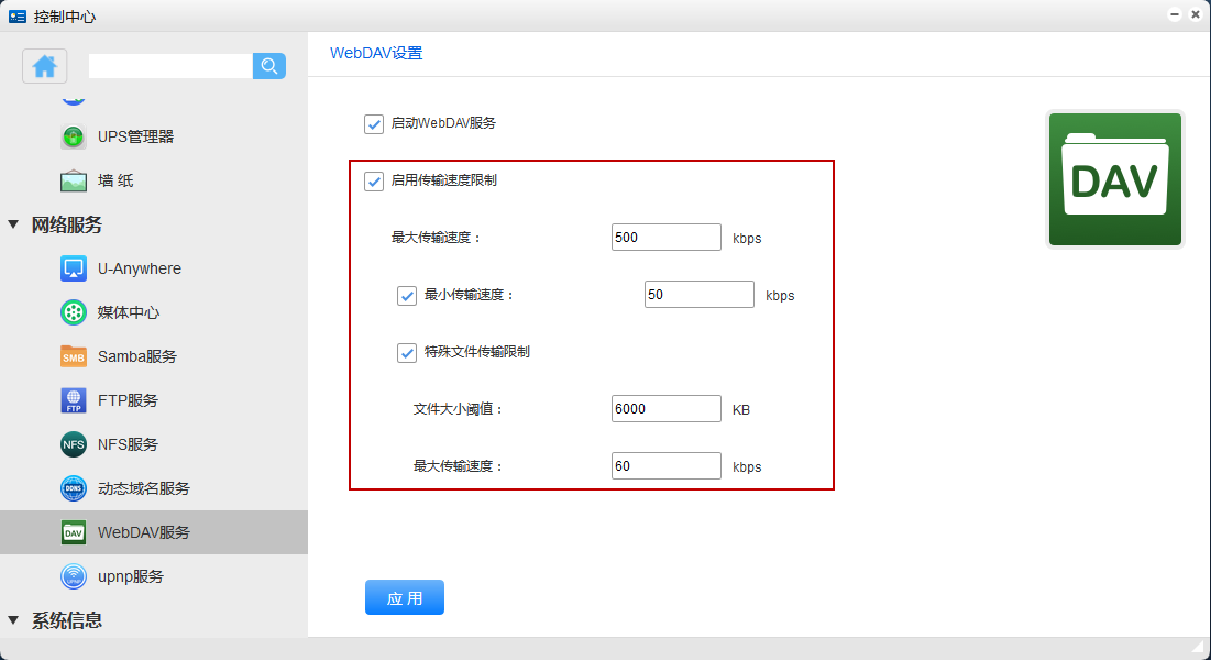 进入 “控制中心 > 网络服务 > Webdav服务”