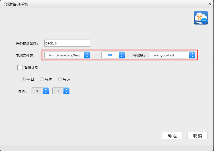 - 任务模块名称: 备份任务名称,示例为backup文件夹路径: 存储文件的目录,此处示例为:/mnt/nas/yutech/music用户: 设置一个用户,此处默认设置为admin密码: 设置一个用户,此处默认设置为admin