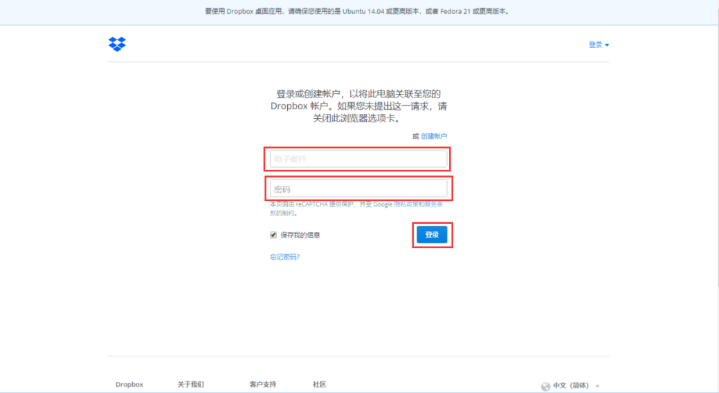 点击 “关联账户” ,下面会出现一个链接,点击就会进入DropBox的登录界面
