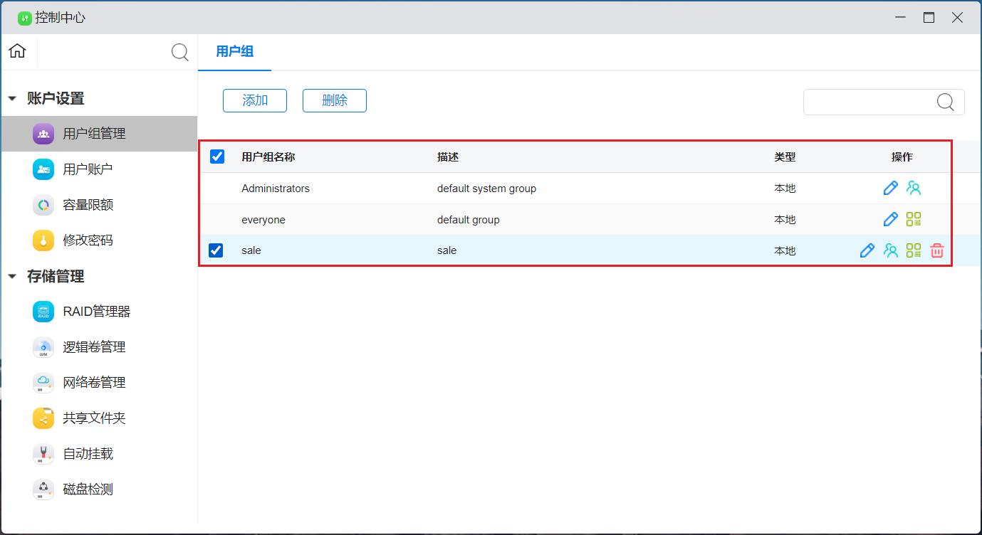 点击“删除”或者直接点击用户组的删除图标