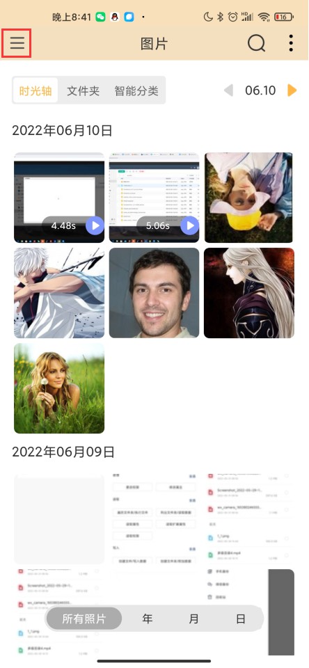 在此可按照视频、音乐、文档、图片、压缩包以及其他类型筛选