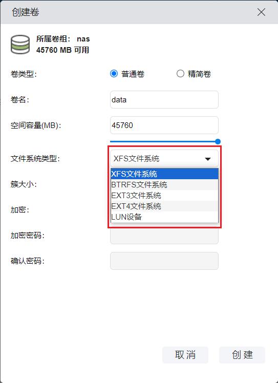 设置卷是否加密(如果要加密的话,这里选择加密,并且设置好密码)