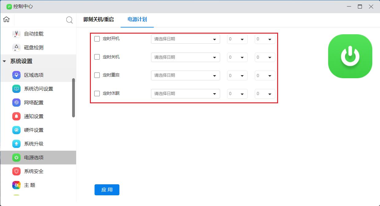 在此用户可以设置即刻关机或重启,也可以设置系统在指定时间关机或重启。