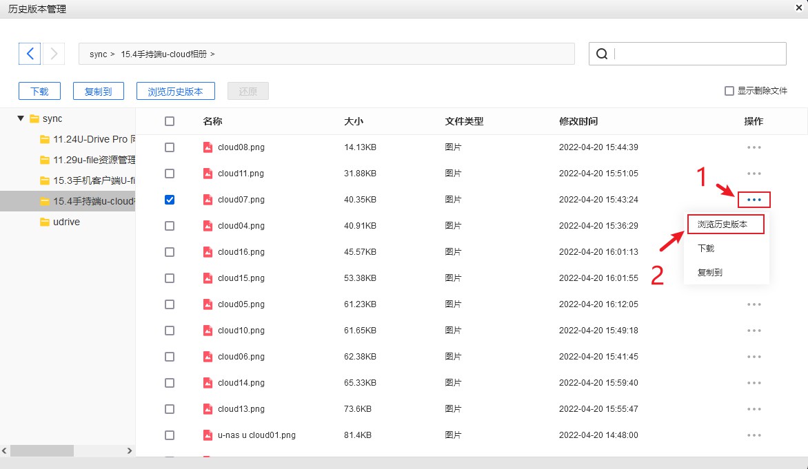 1.在U-Drive 服务端页面,点击“历史版本管理”