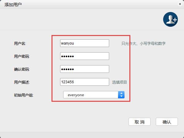 输入用户组名称以及描述,点击“确认”,用户组即添加成功